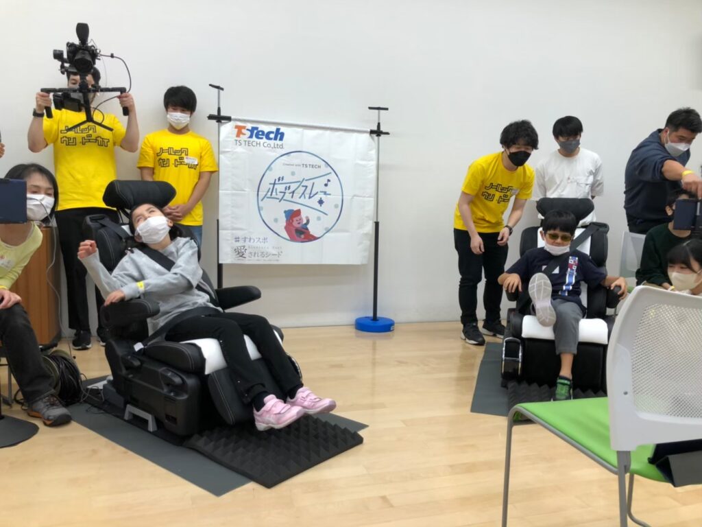 専用の椅子に座る「イスリート」と、モニターを見て指示を出す「コーラー」が協力してゴールを目指す競技です。足踏みや体重移動をコーラーの合図に合わせて行い、会場には笑い声と声援が飛び交いました。